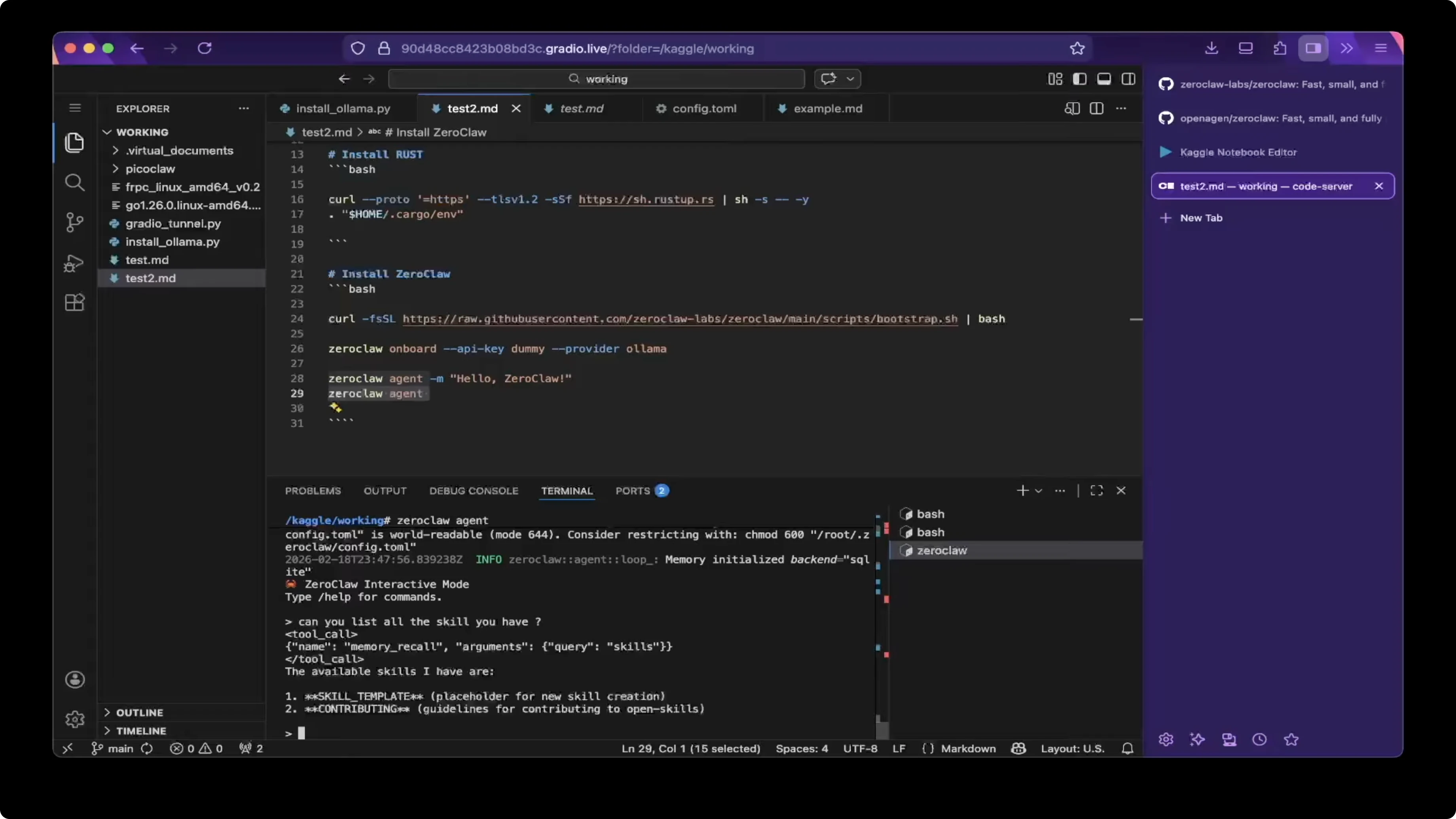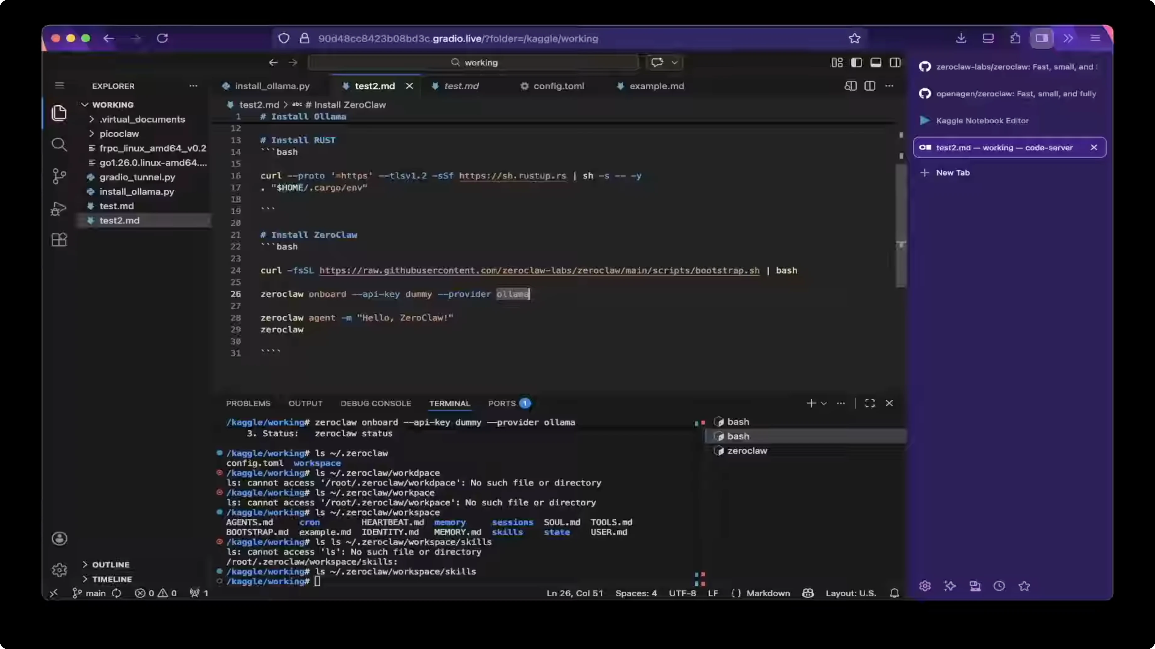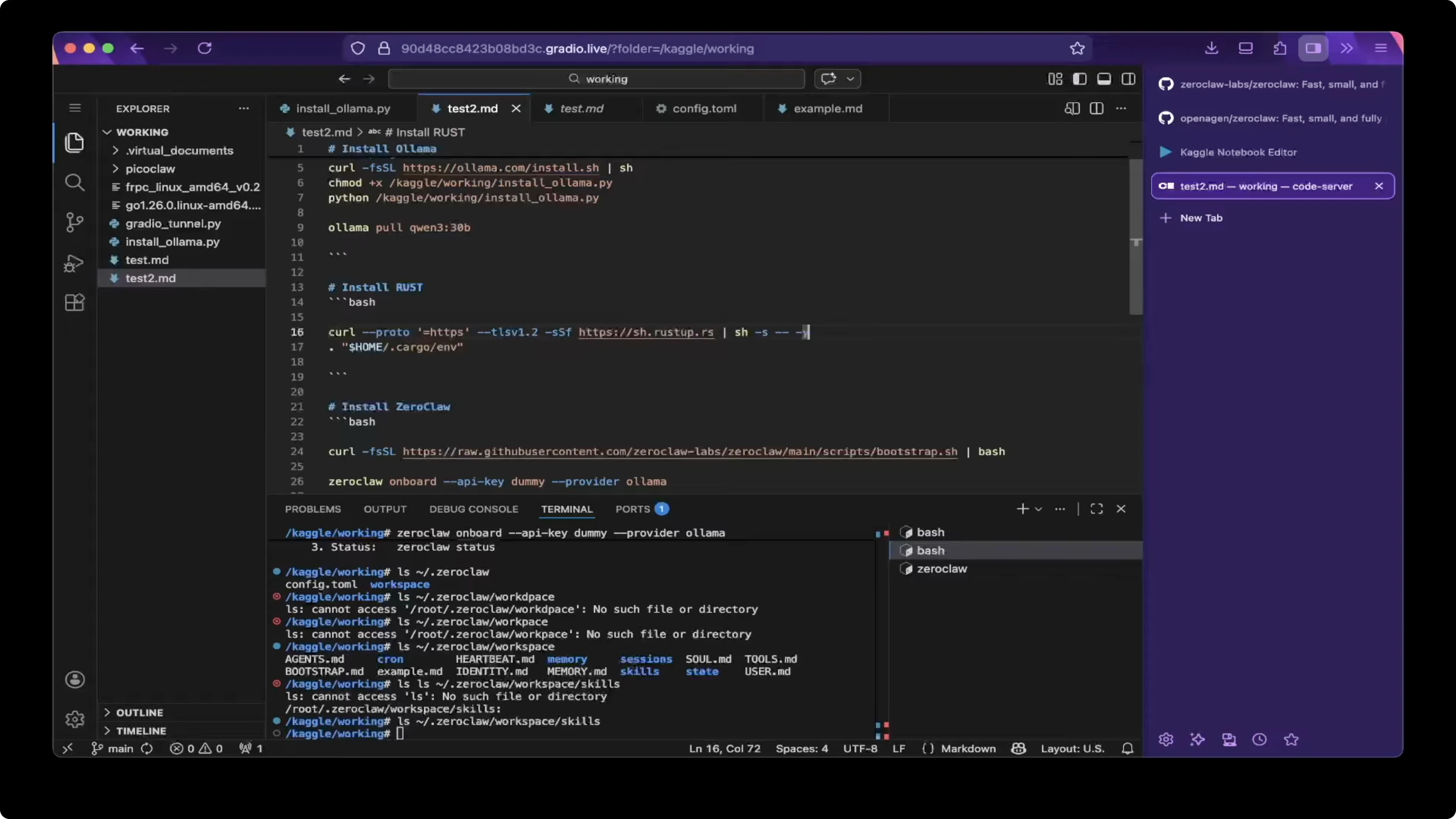 ZeroClaw is a compact Rust fork of OpenClaw that installs in minutes. Pair it with Ollama and a Qwen family model, set think to false in the config, then verify with a quick agent message.