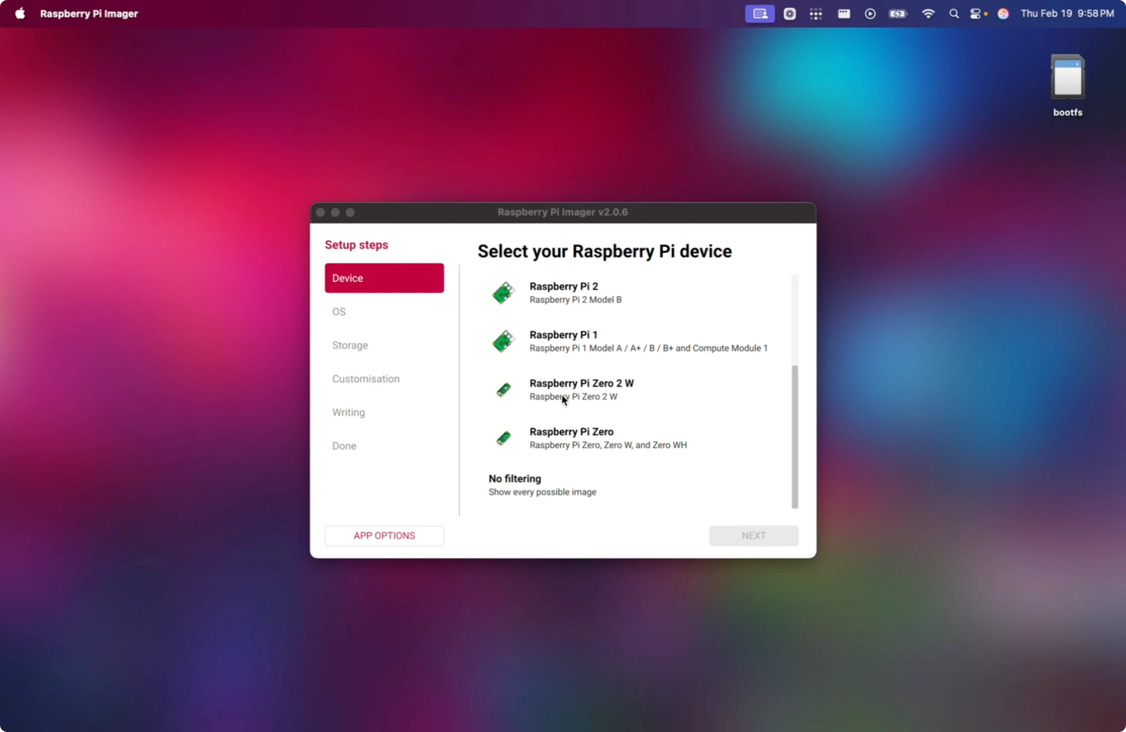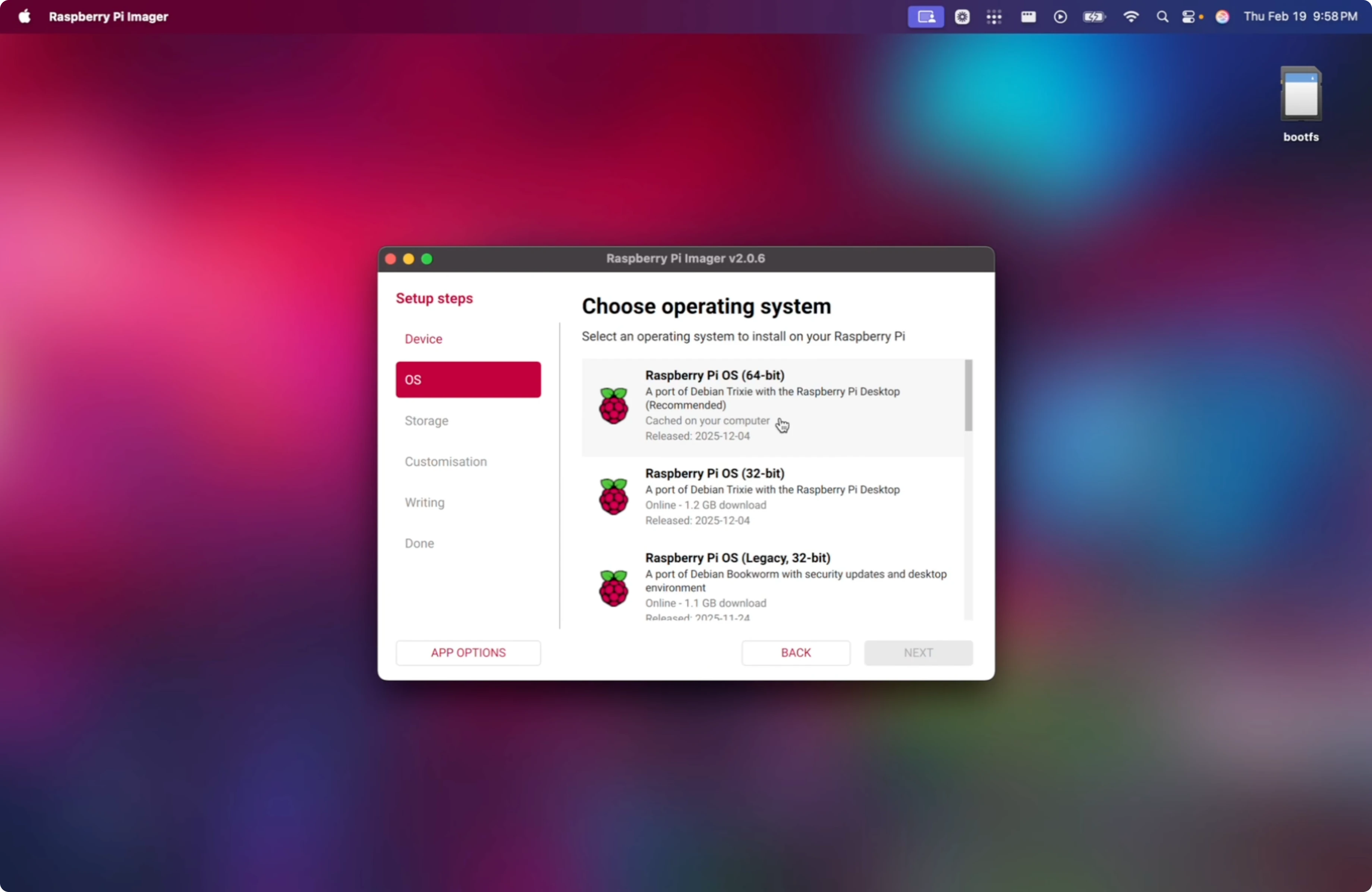 We will image Raspberry Pi OS 64-bit for the Pi Zero 2 W so the static aarch64 ZeroClaw binary is compatible. Give the board time to boot because it has 512 MB of RAM and a modest CPU. Be patient on first start.